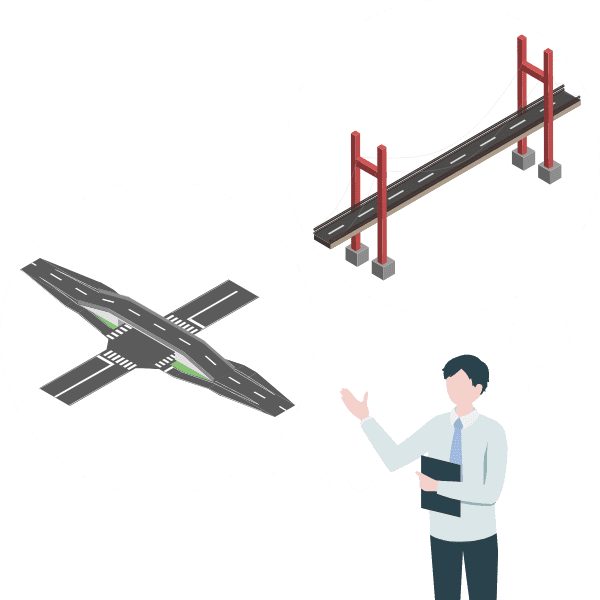 河川砂防、道路、橋梁や一般構造物、そして地域デザイン等の設計及び維持管理を通じて地域の社会基盤整備事業の専門家集団として事業者の支援を行います。