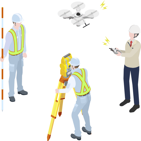 社会資本整備を行う上で必要な土地や構造物の形状や位置、高さなどを正確に測定します。近年、測量手法の進化もあり、人工衛星やUAVなどを利用した測量にも対応します。